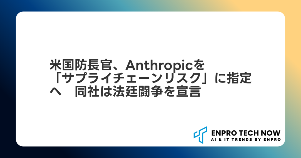 米国防長官、Anthropicを「サプライチェーンリスク」に指定へ 同社は法廷闘争を宣言