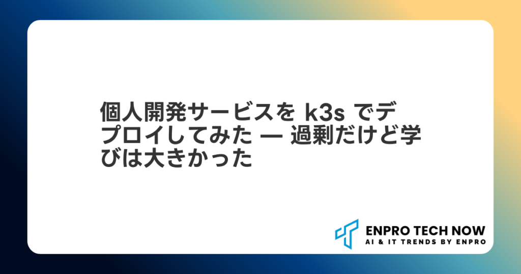 個人開発サービスを k3s でデプロイしてみた — 過剰だけど学びは大きかった